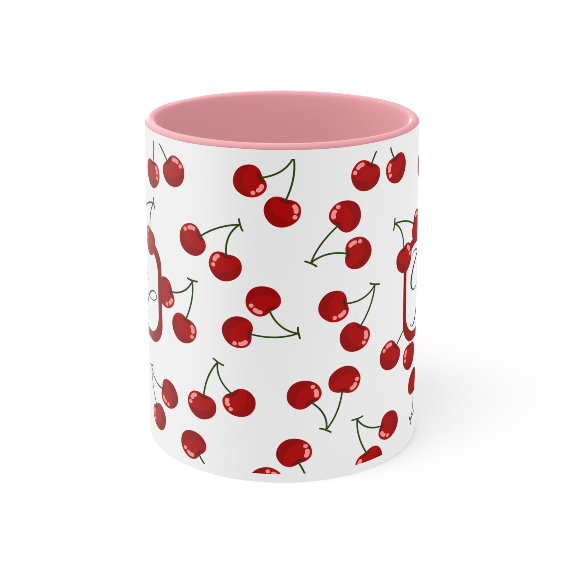 -Charming Design: The vibrant cherry pattern and the bold red accent make this mug both fun and stylish.