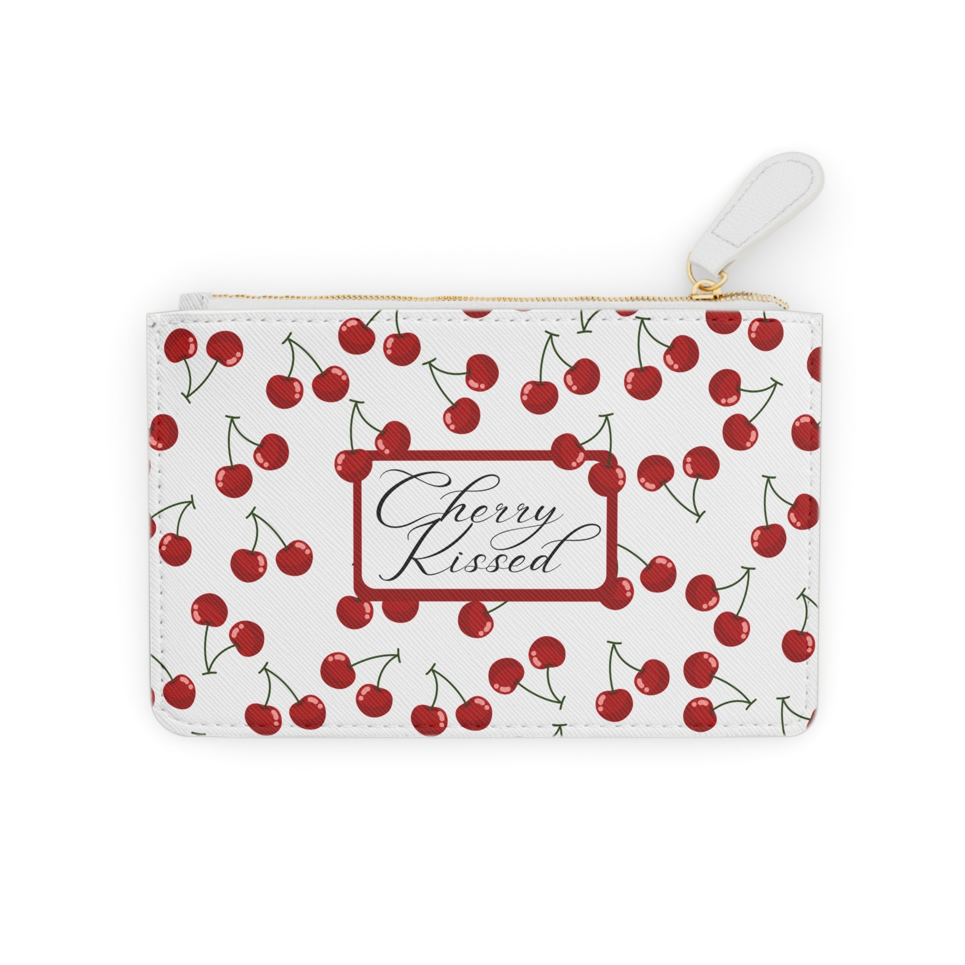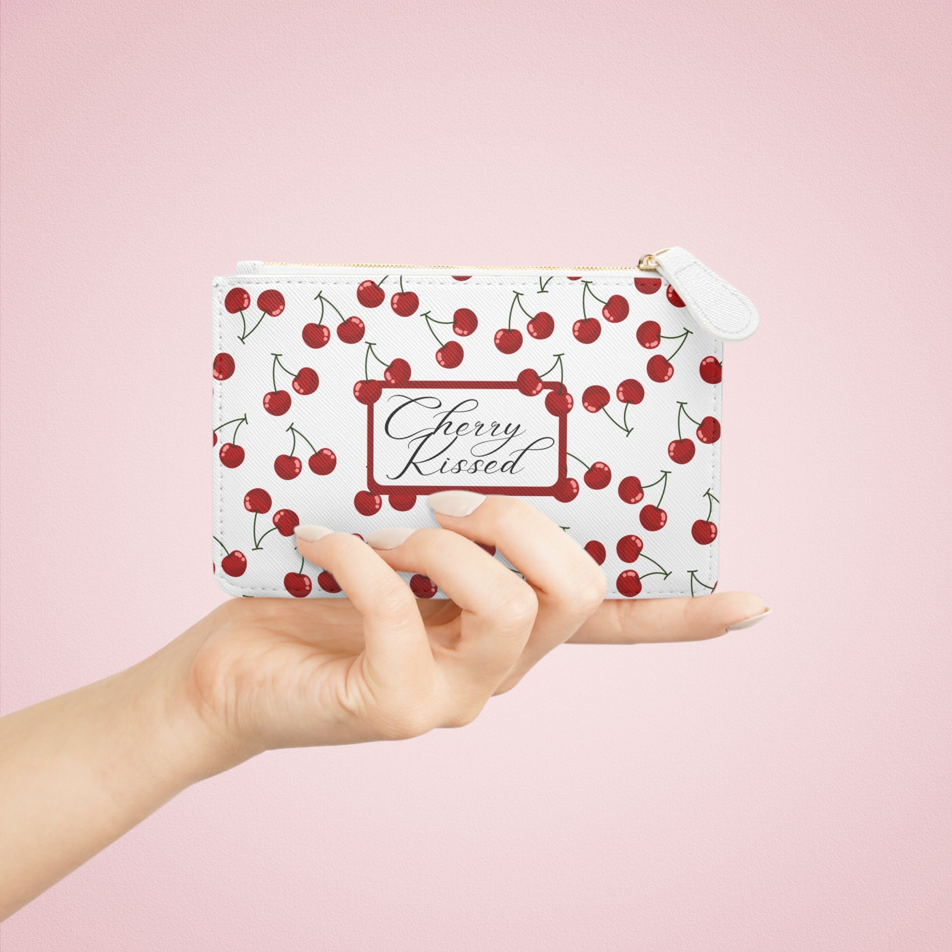 Fun and Playful Design: The vibrant cherry pattern and elegant “Cherry Kissed” script make this mini clutch a fun statement piece.