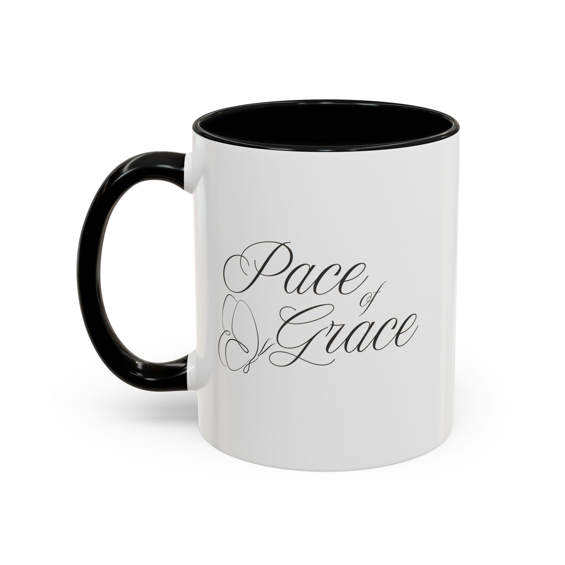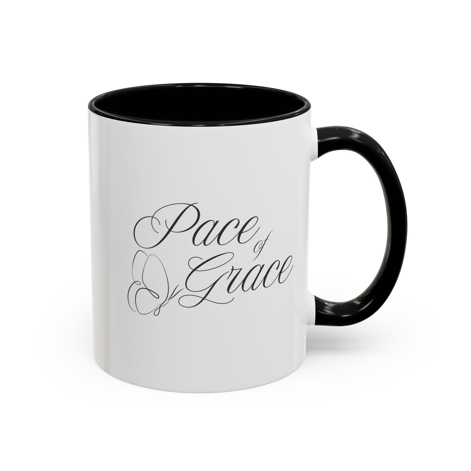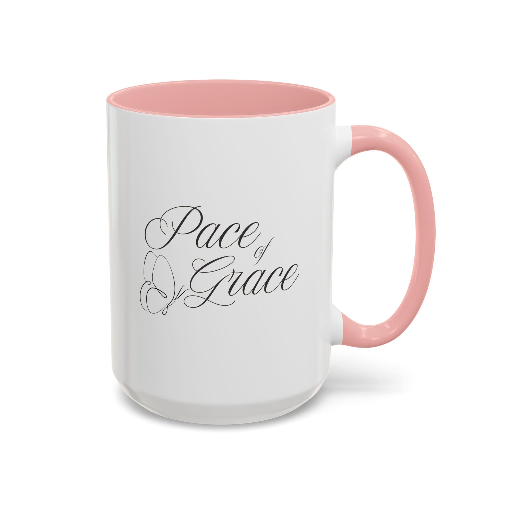 A stylish coffee mug featuring the phrase 'Pace of Grace' on it, double sided print. This mug exudes a calming and peaceful vibe, perfect for enjoying your morning coffee or tea. Ideal for anyone looking to add a touch of positivity to their daily routine. Great for gifting on birthdays, Mother's Day, or as a Thank You gesture. Product features - Microwave and dishwasher safe - Vibrant colors with crisp printing - Available in two sizes: 11oz and 15oz - Multiple interior and handle colors to choose from - Lead and BPA-free Care instructions - Clean in dishwasher or wash by hand with warm water and dish soap